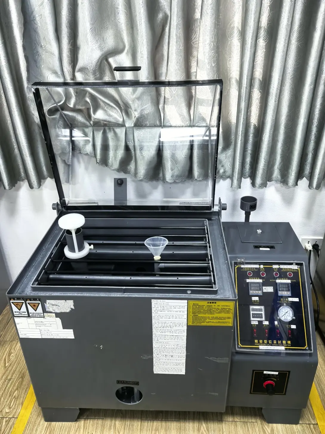 ● Test Kurulumu: Sıcaklığı 35°±2°C'ye ayarlayın. Püskürtme basıncı, püskürtme hacmi ve diğer parametreler, nötr tuz püskürtme testindekiyle aynı şekilde ayarlanır.